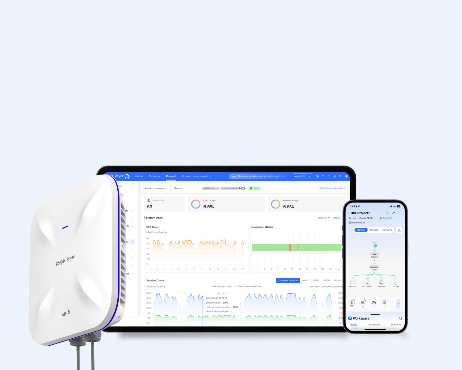 Mit dem optischen Gigabit-Port unterstützt der RG-RAP6260(G) Datenübertragungen über eine Entfernung von bis zu 20 km von einem Rechenzentrum per Einzelmodus-Glasfaser.